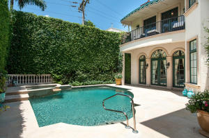 Designer's 4-bedroom, 4.5-bath furnished exquisite gated townhouse in the heart of Palm Beach. Highly desired location two blocks from Worth Avenue and the Palm Beach Docks. Custom furnishings, high ceilings, immense trim work, gas fireplace, chef's kitchen, butler pantry, sweeping staircase, elevator, stone and walnut floors, loggia, private pool and spa with terrace and balcony. Turnkey opportunity.
