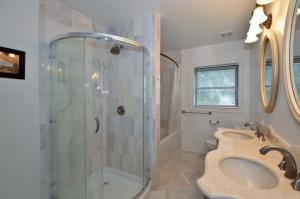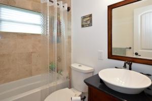 Spacious South of Southern home on a big lot by Flagler Drive! This home has four bedrooms plus a den that could be another bedroom plus 2 1/2 baths. The open plan has a great flow from living room to family room to dining room to kitchen. Travertine flooring and sets of French Doors make the home light and bright.The kitchen is renovated with wood cabinetry, stainless appliances and granite countertops.The master bedroom opens to a spacious bath with a separate shower and soaking tub and an elegant double vanity. These adjoin another bedroom to make a perfect home office or dressing room/master closet.The two upstairs bedrooms share a renovated bath. The downstairs den/5th bedroom has a renovated 1/2 bath ensuite.All this and a sparkling pool on a nice lot steps from F