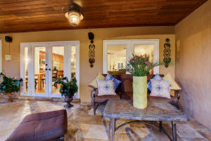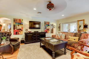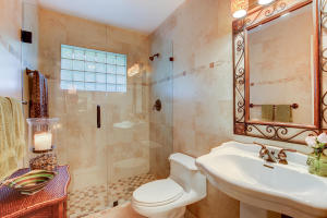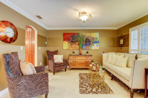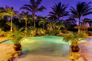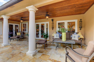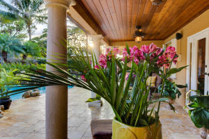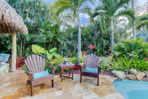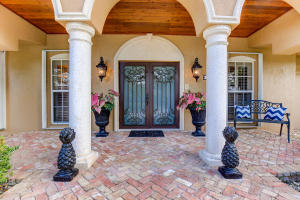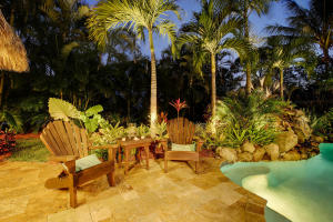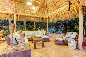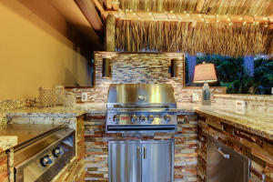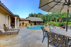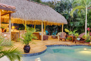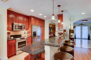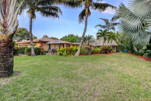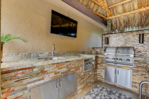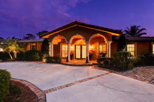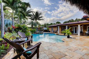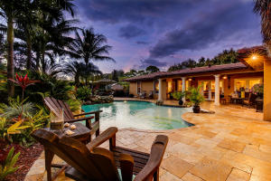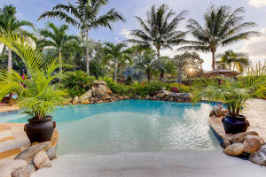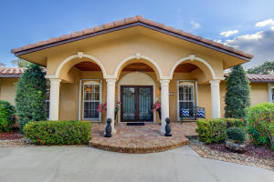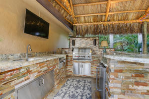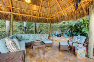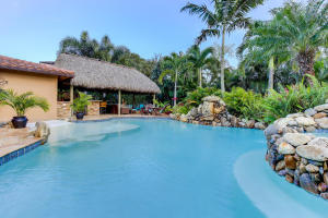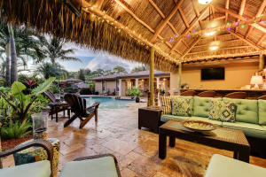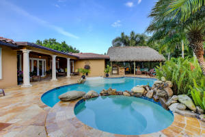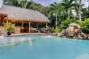 Charming,Cozy & Updated only begin to describe this unique Palm Beach Farms executive home. Desirable corner lot (fenced & hedged for privacy)features a Resort Style heated pool w/waterfall,a beautifully landscaped backyard with marble deck, custom Summer Kitchen and 350 sq.ft thatched Tiki Hut fit for the most fabulous parties & tropical entertaining. Circular Drive + Side entry garage add to the exterior appeal. Step inside to find an impeccably maintained and decorated home featuring an open kitchen w/cherry wood cabinets,granite counters,tumble marble backsplash & KitchenAid stainless steel appliances. Bathrooms have been updated with nice vanities,tile & seamless enclosures. Impact French doors, accordion shutters,hurricane garage doors & generator hook-up offer full protection.