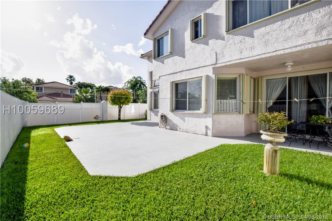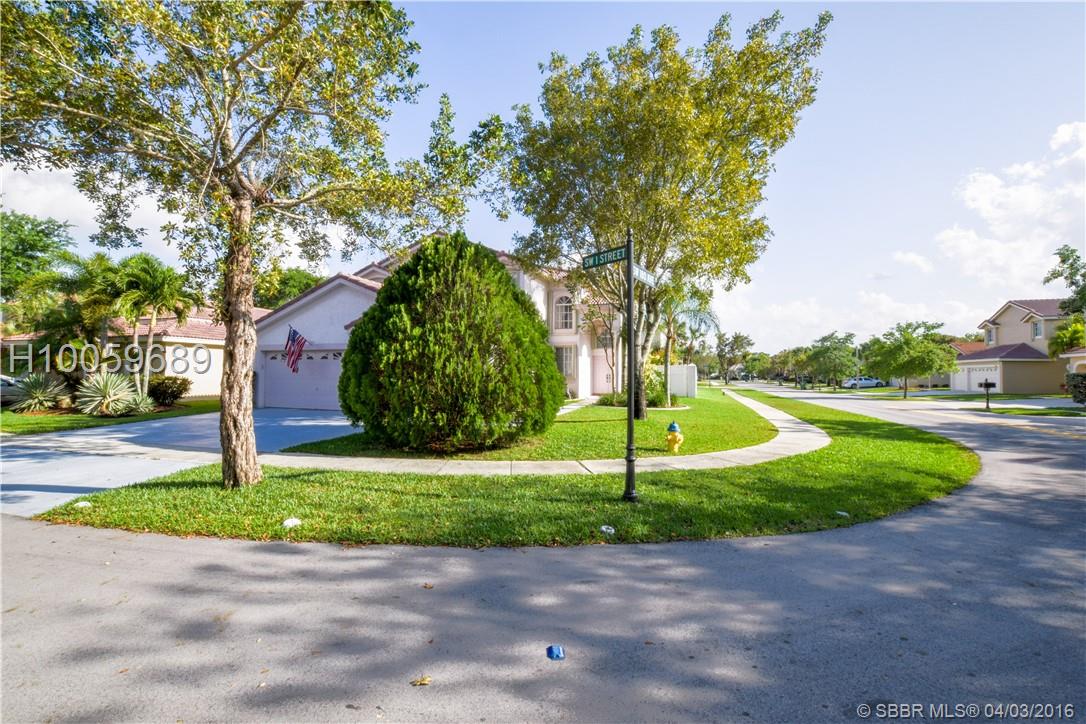 UPGRADED 4/3 Corner Lot with 3 car garages. Very well maintained. 1 bedroom & full bath downstairs. Separate Living Room, Formal Dining Room & Huge Family Room. Open style upgraded kitchen has breakfast area with big window. Big Master Bedroom has 2 closets. Many upgrades, Accordion Shutters on all windows, Wood Blinds, New Kitchen Appliances and Air-conditioning unit. Upgraded bathrooms. New water filter in kitchen. Fenced backyard with new fence, has space for a pool. Freshly painted. Gated Community.