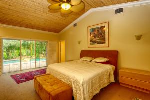 Welcome to your tropical oasis within Boca Grove. Located on a lush lot near the 11th fairway, this home features 4 bedrooms, 4 baths, a morning room, gourmet kitchen with granite counter tops and wood cabinets, steam shower, sauna, cedar closet, his and hers master bathrooms, dramatic vaulted ceilings, imported Italian Norwegian Rose marble floors, and accordion hurricane shutters. Landscaped with many exotic fruit trees. This home is excellent for entertaining from the large exterior patio, open layout for living areas with vaulted ceilings and a fireplace. Circular driveway. Large pool with serene waterfall. One bedroom has been fitted for a study complete with Peghardwood floors. Plantation shutters and french doors throughout. 3 car garage has been wired for electric cars.