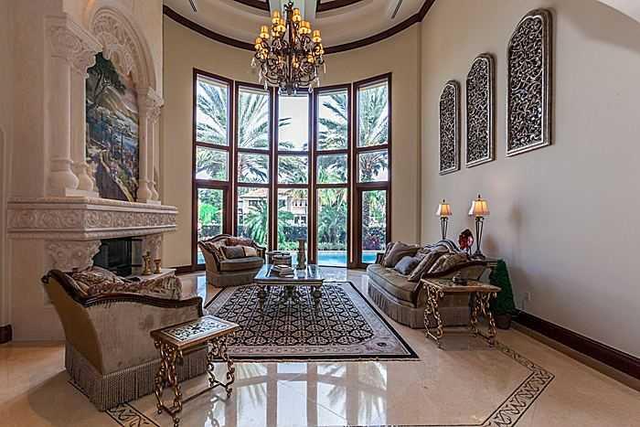 Customized home loaded w/ state of the art features. Best canal, 120' wide, deep water, & turning basin. Home theater, crestron & lutron home management & entertainment systems, steam shower and spa, large closets, wine room & bar, one-of-a-kind gazebo w/ swim up sports bar. Elevator, whole house generator, perimeter security cameras, award winning gourmet kitchen w/ Wolf gas range & top of the line appliances. Summer kitchen. Gated entrance w/ circular drive amidst specimen palms & tropical plantings.