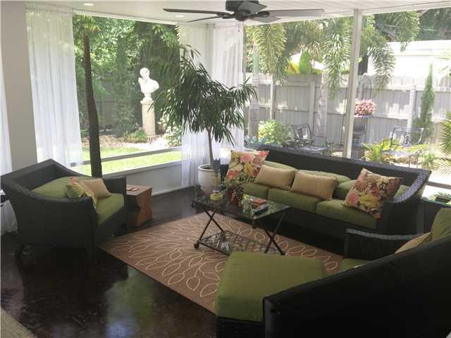 "WOW Award" winning home. Completely renovated! New: kitchen, euro baths, water heater, stacked w/d, refrigerator, conv oven, underground wiring, plumbing, walls, floors. Exposed beam ceilings. Impact windows. Surround sound in den, living room, patio. Ne w fob activated ADT Pulse security system with 3 live feed cameras to your smart phone /device. Breezy 300 s/f screened patio surrounded by lush tropical private yard. New sprinklers, new 3.5 ton AC with Clean Effects air filtration system. Move in ready!