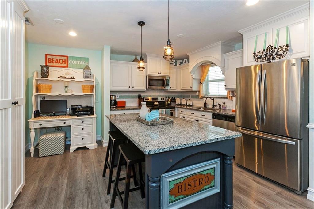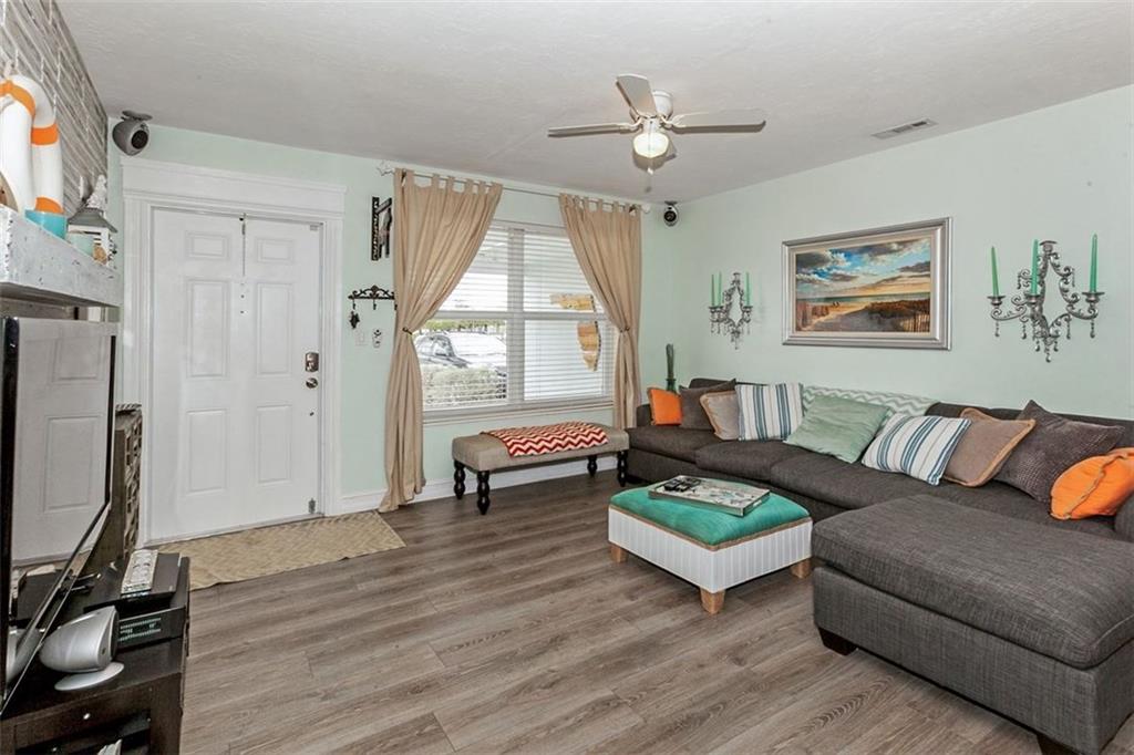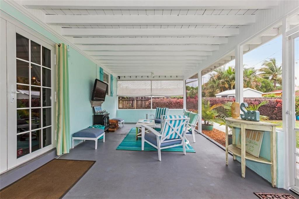 Beachy Chic 3 bedroom/2 bath single family home shows like a model! Completely updated - nothing to do but move in! Features include impact windows, open concept floorplan, new flooring throughout, custom decorator paint, large island kitchen w/ granite counters, stainless steel appliances & subway tile backsplash; master bedroom w/ en suite bath, wired for surround sound, huge screened patio, large fenced yard w/fire pit, one car garage, newer AC & on demand tankless hot water heater.