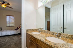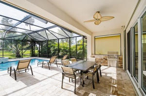 Beautiful expanded St. John's builder model 5 bedrooms, 4 full baths on a private preserve lot. The luxury heated pool, patio, and spa are only 1 year old; and decked around with travertine pavers and under the large covered patio is a built in BBQ. The gorgeous kitchen is huge with an expanded granite island, stainless steel appliances; 42 inch wood cabinets; real wood floors; very open and spacious living areas with one bedroom downstairs; upgraded baths with granite; huge master bedroom with a balcony over looking the preserve; walk- in closets with professional built-ins; master bath has a separate shower and Jacuzzi tub; accordion shutters; water softener; filtered water system and so much more! A true must see home at an excellent value.