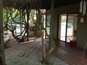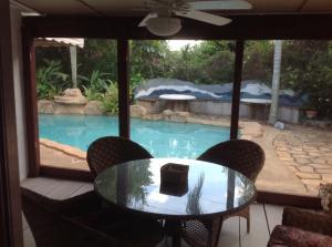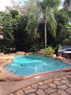 Just reduced! One block to Pine Breeze Park! A tropical paradise with waterfall salt water pool, screened patio/breakfast patio, huge corner lot, and room to add on! Hard wood flooring, tile, wood burning fireplace, gas grill, large laundry room, shutters. Gourmet kitchen with hood, granite and wood cabinets. Upstairs master with office, NEW ROOF!