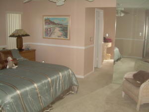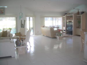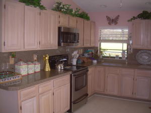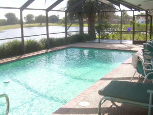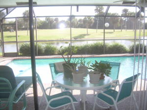 Great buy-just reduced & available for quick closing. Spacious immaculate 4 bedrm. 3 bathrm. pool home w/2 1/2 car garages & amazing golf & lake views. Open floor plan w/spacious great rm. large custom eat-in kitchen w/wood cabinets, granite counters, newer appliances, interior laundry rm., luxurious master suite w/large walk-in closet. Huge screened patio, newer roof, neutral ceramic tile floors, carpeted bedrms. 2 of the 3 bathrms. are also cabana bathrms. 1/2 garage at rear of house for golf cart or extra storage. This house has it all & great curb appeal w/circular driveway. Ideal location & E-Z quick walk to Houses of Worship. No Club membership required.