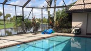 Reduced $50,000 Great Location Lake and golf view in this Single Family, 3 bedroom, 2 1/2 bath, screened in pool home all tiled with enclosed atrium, great for an office. There are 2 cabana baths. Volume ceilings with many skylights. Fans in all the bedrooms, There are extra hi hats. Light and bright home. Mandatory Membership of $70,0000.