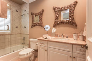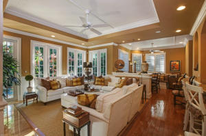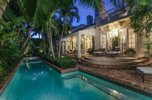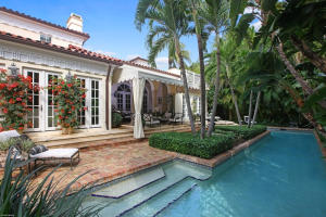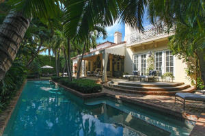 Mediterranean Revival, 4 bedroom, 5.2 bathroom, 2002 In-town home with marble and wood floors. Tropical back yard with wonderful lap pool. High impact windows and doors. Master on first floor. High ceilings with detailing in each room. Close to Worth Avenue.