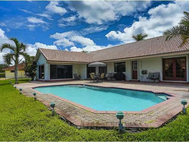 Here's the one you've been waiting for - 4 bedroom single story pool home set on an over sized lake front lot. Features include a newer Spanish S-tile roof, accordion style hurricane shutters, beautiful remodeled island kitchen with granite counter tops and back splash, and cherry wood cabinets. over sized 12,,249 sq.ft. cul-de-sac lot and brick paver pool patio. Other features include French doors, vaulted ceilings, stainless steel appliances and circular driveway. Top rated Cooper City schools!