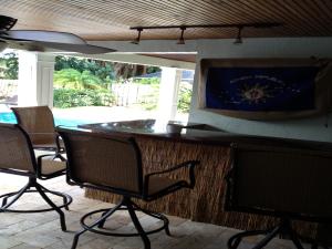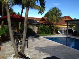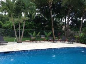 Beautiful updated 5/3.5 Tropical Key West Paradise Home. Split Bedrooms with 2 master bedrooms. Granite Kitchen, stainless appliances, wine cooler, pantry, wrap around Bar Countertop that seats six. Bathrooms are updated and includes spa tub. Marble tile , crown molding, Knock down ceilings, Wired for surround sound in living and family rooms, vaulted ceiling. All windows and sliding doors have been updated. Laundry room with sink and front loading washer & dryer. Lots of Parking available with 2 car garage and circular driveway with pavers. Newly updated Key West style pool with travertine paver patio with outside Bar and covered seating for entertaining. The yard is fenced in and includes an outdoor shower, fish table and sink. Perfect Home to entertain family and friends.