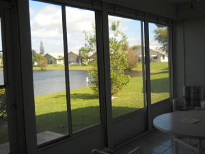 Waterviews, all tiled, fab. front entry porch that is w/a/c vent, kitchen cbs. updated, blt in b/nook seating, plantation shutters in BR's., windows in both baths, new cabs in both baths, mbth. shower tiled to the top, back patio w/a/c vent, screened & windowed, accord. shutters, X-back patio which has roll ups. Andrew strength new gar. door & elect. opener, Fl. room neutral wood paneling, 6 fans, a/c 2011, roof 2004, office ready blt office cabs in 2nd br.,
