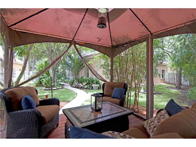 STUNNING BANYAN MODEL IN THE MEADOWS-THIS HOME IS A PERFECT 10, WOOD CABINETS, GRANITE, SS APPLIANCES, WOOD, MARBLE, PORCELAIN FLOORING, MARBLE MASTER BATH, DUAL SINKS, SEPARATE SHOWER, STRIKING CLAW TUB, CLERESTORY WINDOW, RAISED-PANEL DOORS, CROWN MOLDI NG, WOOD-TRIMMED/FRAMED WINDOWS, 10' SMOOTH CEILINGS, LED LIGHTING, COVERED SCREENED PATIO, MARBLE PAVERS, WATERFALL, GAZEBO, HURRICANE ACCORDION SHUTTERS, IMPACT DOORS, LUSHLY LANDSCAPED PIE SHAPED LOT ON KID-SAFE QUIET CUL-DE SAC, YOU MUST SEE THIS HOME