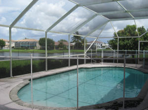 Stunning 5 bedroom, 3 bathroom pool home on huge lakefront lot. Enjoy long lake views upon entering the house and from most rooms. Large screened pool/patio plus fenced yard. Granite countertops in kitchen. Newer roof. New porcelain tile just installed in all living areas and new carpet installed in all bedrooms. House freshly painted inside. Residents enjoy world class resort style amenities that include resort style pool, kiddie pool, spacious hot tub, sauna, steam room, state of the art fitness center with aerobic room offering a variety of free fitness classes, tennis, pickle ball, basketball, racquetball courts and a new playground are also available.