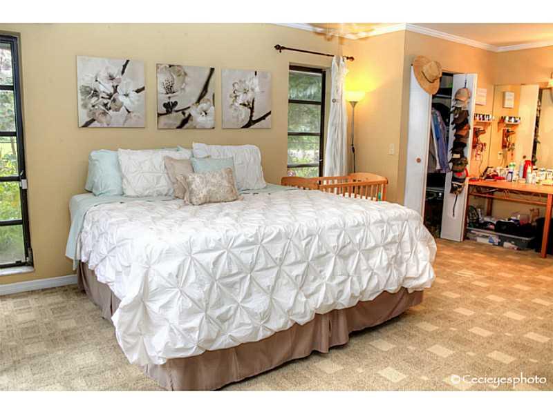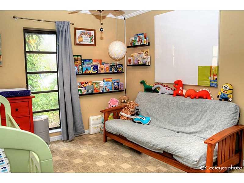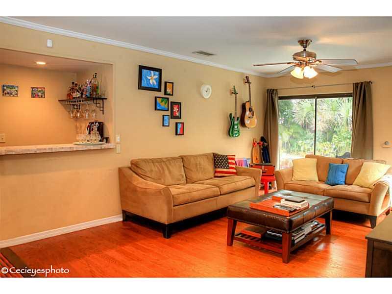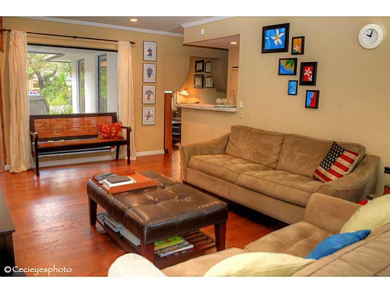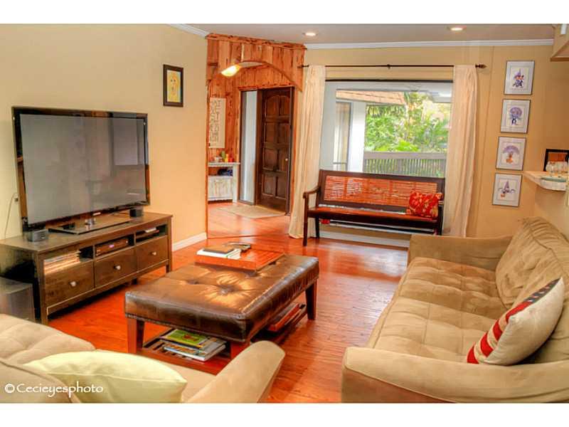 Unique. Intriguing. Great family home in highly desirable gated community. This home was designed with large lot and tropical views in mind. Many floor to ceiling windows and sliding doors create an abundance of natural light. Feels like you are livin g amongst the trees and plants in a tropical environment. Large open kitchen has newer cabinets, granite counter tops and stainless steel appliances. Beautiful warm wood flooring in living areas and carpeting in bedrooms. Den. Large patio & more.