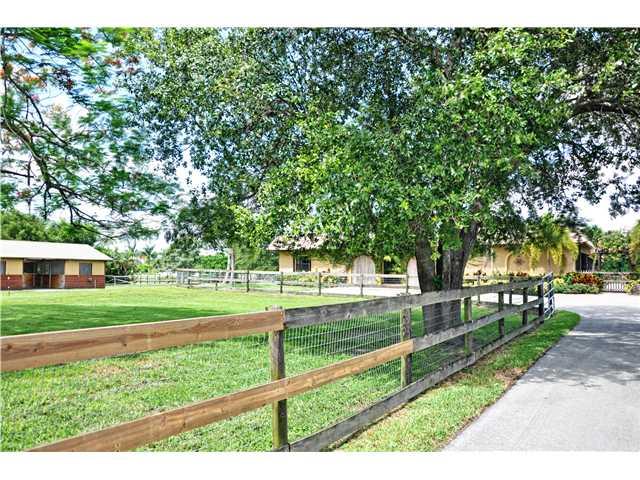 SPANISH-HACIENDA STYLE HOME WITH BARREL TILE ROOF & IDEAL FLOORPLAN FOR ENTERTAINING OR A LARGE FAMILY. 4BR/3BATHS, OVER 3,960SF, 3 PATIO AREAS, POOL SURROUNDED BY PAVERS. DUAL ZONE A/C'S ONLY 2 YEARS OLD. KITCHEN BY 'WOLF IN THE WOODS', SUB ZERO FRIDGE & CONVECTION OVENS. SEP LAUNDRY ROOM WITH WASHER/DRYER & BUILT-IN SINK. PROPERTY IS FENCED & HAS SECURITY GATE FRONT ENTRANCE. GREAT SCHOOL DISTRICTS, EASY ACCESS TO HIGHWAYS, SAWGRASS MALL & WESTON SHOPS. 2 HORSE BARNS AND 5 STALLS.