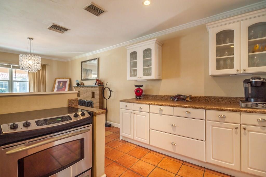Not to miss! This brightly lit, lovely 3 bedroom, 2 full bath home, features terra-cotta floors throughout, combination living room / dining room, newer open kitchen, built-ins, marble tiled main bath, travertine tiled master bath, cedar closets, laundry, storage room, newer a/c, tank-less water heater, private fenced yard located within minutes of the beach, walking distance to shopping, dining and entertainment on Wilton Drive.