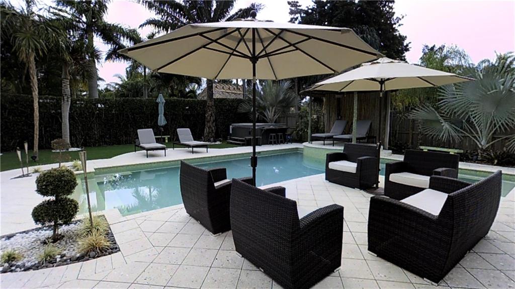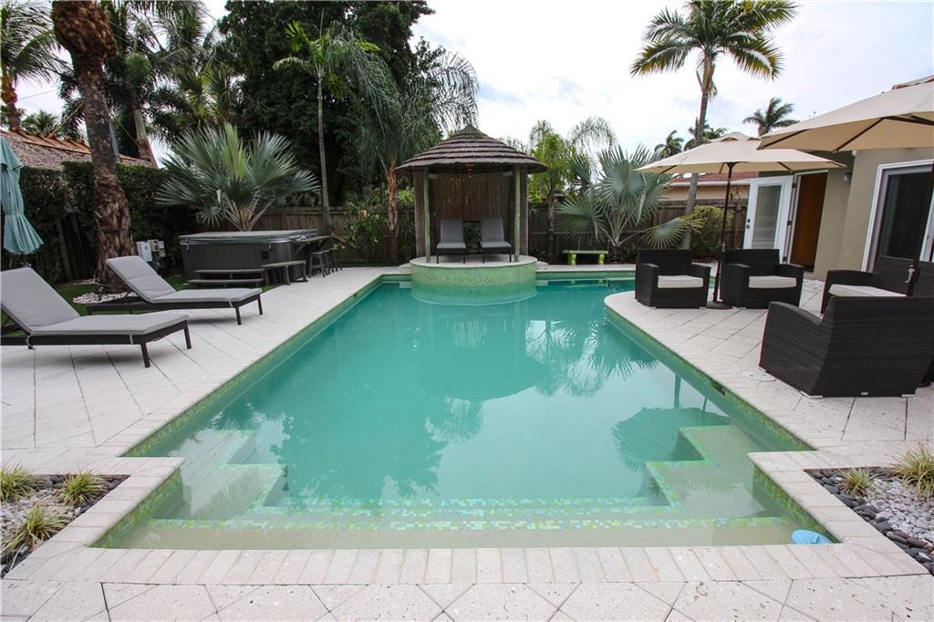 Incredible Resort Style Pool Home in Poinsettia Heights. Designer flair abounds! Kitchen features high-end appliances and cabinetry...Thermador, Fisher Paykel, Miele. 30 in. Built-In wine cooler. Glass tile and marble baths are magazine quality. Low-maintenance yard outfitted with artificial turf, resort style pool w/tiki cabana, outdoor bar w/built-in grill & dramatic outdoor lighting! This home is truly an entertainers dream, minutes from Wilton Dr., The Beach, and Downtown Ft. Lauderdale.