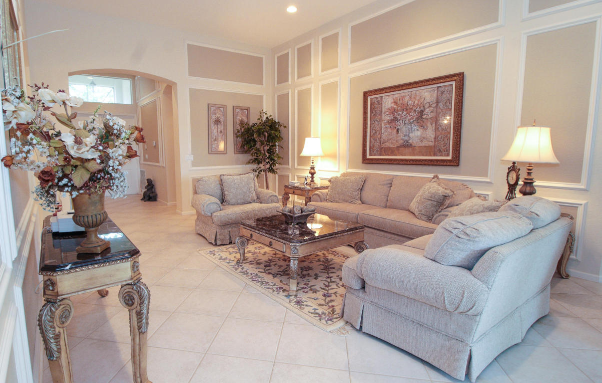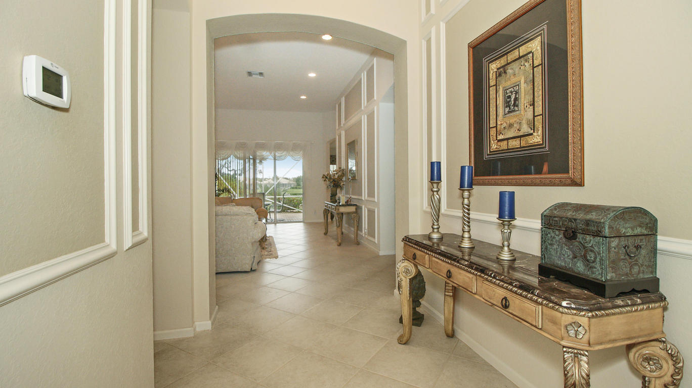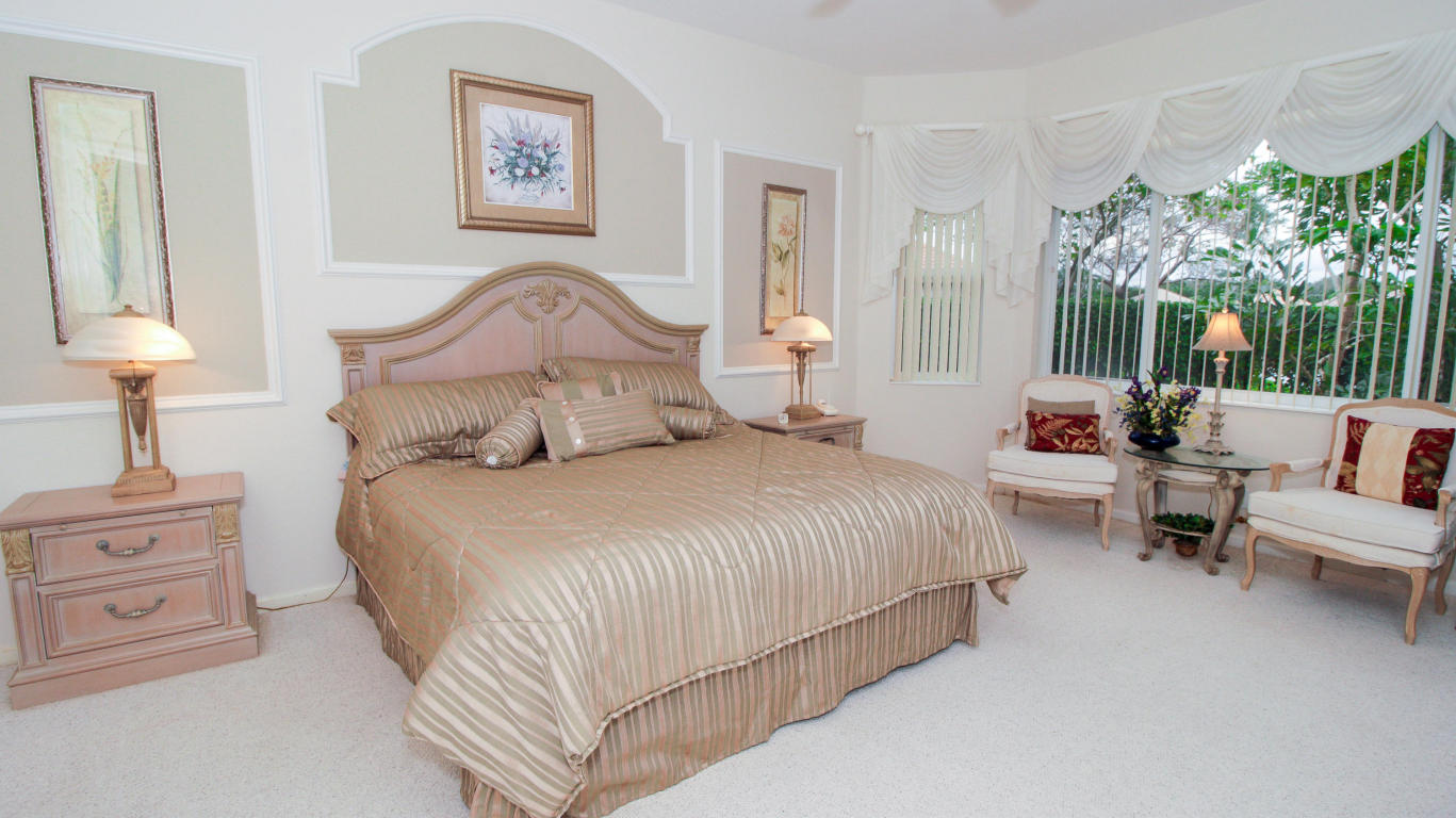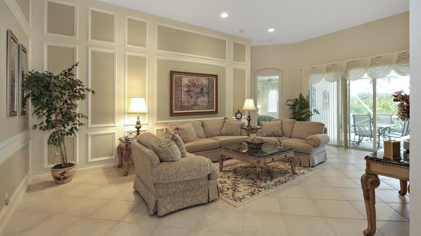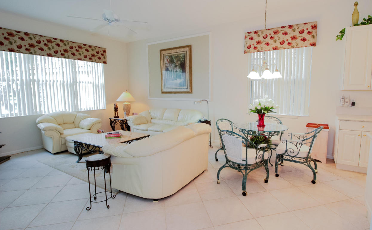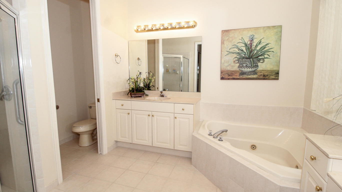 Model like 3 bedroom 3 bath lakeside home in Baywinds, a resort like age restricted community of West Palm Beach, FL. Offering 2,567 SF of living space, this home delivers a comfortable space to enjoy the features of this well dressed home. Decorative touches such as mill work enhance the sophistication evoked by the neutral toned decor. Fine tile flooring set on the diagonal cover the main living space and Berber style carpeting is featured in the bedrooms. The kitchen offers Corian counter tops and beige toned appliances to compliment the soft colored decor. most appliances are under 5 years old and a hi-efficiency AC is 4. The rear patio is screen enclosed with a paver extension encapsulated by a charming garden. See this stellar home in a top shelf age restricted community