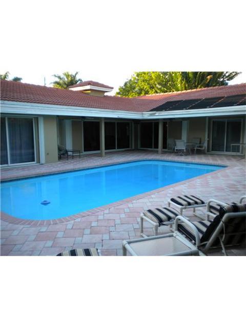 Beautiful and spacious Coral Ridge Country Club pool home featuring 3 large bedrooms, 3 full bathrooms (one cabana bath), remodeled master bath, 2 zone A/C, interior laundry room, accordian shutters and a 400 sf family room with wet bar, refrigerator and wine cooler(family room can be converted back to a garage - or make it an in law suite with its own entrance). All rooms open out to the pool area with sliding glass doors that retract.