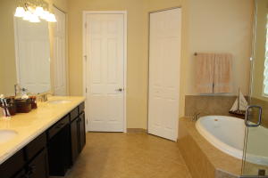 Beautiful high efficiency home with tons of upgrades including bedroom with full bath on first floor. Cook's kitchen with large island, granite counters, high end stainless steel appliances, double oven, recessed lighting, crown moulding, upgraded dark wood cabinets and new light fixtures. Plenty of room for the kids to play with open lot to the right and large fenced yard. 9 foot ceilings. Comfortable Master Bedroom with large extended sitting area, coffer ceiling and recessed lighting. The spacious Master Bath includes two walk in closets, dual sinks, upgraded cabinets, separate walk-in shower with frameless glass doors and large soaking tub. Convenient Laundry Room with utility tub on second floor. PortoSol offers resort style amenities, clubhouse, pool, tennis, fitness center and more.
