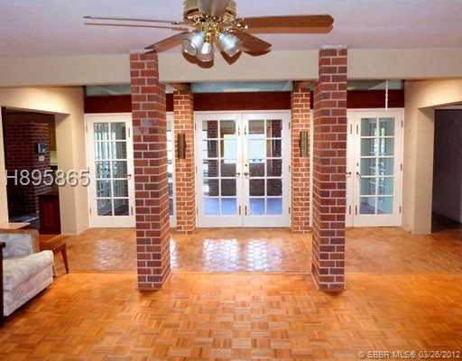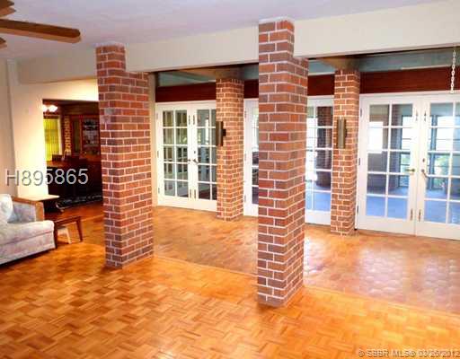 Waterfront! Desirable oceanside community.Just one fixed bridge.Foyer entry,lg family room with area off kitchen for formal or informal dining,large living room with separate area for office,French doors lead to waterfront Florida Room.Master Suite has 2 large walk in closets,3 other bedrooms share 2 baths on other side of home.Big laundry/utility room.Pool has recent heater.Home has newer gas generator. This property to be conveyed AsIs.Home, seawall,and dock repairs are needed.Walk to Beach.