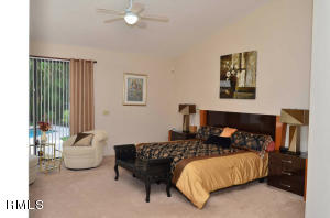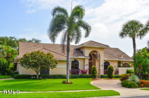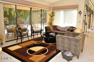 Enter this well appointed estate home and be "wowed" by the excellent condition throughout. Expansive floor plan features large room sizes and excellent guest accommodations. Roof replaced in 2006. Kitchen redone in 2007 with wood cabinets, granite counters, stainless appliances, custom island with sink, cook top, with hood and stainless backsplash, pull outs in cabinets and large eat in area. Back of home has accordion hurricane shutters and front has panels. Family room off kitchen overlooks screened in patio. One bedroom has laminate flooring and private bath updated mosaic tiles and glass counters. Third bedroom makes for perfect office or den with laminate. Master bedroom is oversized with pretty views of pool and patio and has 2 large walk in closets with custom built-ins.