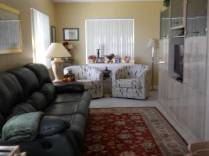 Fabulous water views,(4) exposures! BR floors wood laminate, all else diagonal off white tile, fleck fin. double car driveway, alarm system updated, baths updated, k/cabinets updated, lighting extras in ceiling, 500 gal. propane tank u/ground for ER generator/Barbeque w/svc. contract, rear porch glass jalousie windows, accordion shutters 2008, roof 2004, a/c 12/06, Seller to transfer Aztil Main. & the exterm. contracts, no add.charge, nearly a yr. left., surge protected for total house from attic. Only 58 homes in Pl. 8.Central WPB, adult 55+ comm., gated, golf course, & more. Garbage expense in property tax bill. T.V. by Direct Plus.Larger lot, dist. between homes great.