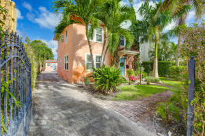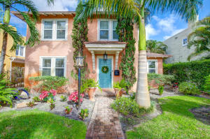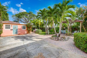 Rare historic beauty boasts Pecky Cypress entrance, original hardwood floors, charming historic details throughout. 3/2.5 2 story home with a separate Guest House (1/1 w/living area) in the historic Northwood Village of West Palm Beach. This property is on the Old West Northwood Historic District local registry. Updated kitchen w/granite countertops and stainless appliances approx 2008. 1 of 2 AC units approx 2005. Flat tile roof approx 2004. Charming garden retreat. Well water for irrigation. Garden Gate,