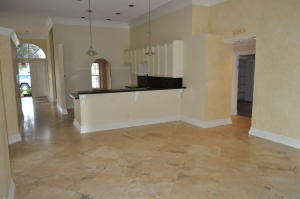 Home located on quiet Cul-de-Sac in the middle of the community. Single story home with saturnia marble floors thru out the living areas and the master bedroom, wood laminate floors in 3 other bedrooms, kitchen has granite counters with light wood color cabinets. Split bedrooms on left side of house, large family room, separate living room and dining room located in the front of the house. In Ground pool with pool heater and fully fenced yard for kids and pets along with a huge side yard for swing set or ball games. Garage has ceramic tile floor and there are hurricane shutters in the garage.