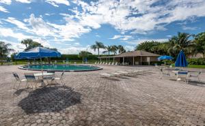 Spectacular 3/2 plus a den pool home, Floorplan included. Great Location walking distance to community park. This home has been freshly painted and many brand new upgrades including diagonal tile, a bright custom kitchen with under / above counter lighting plus a solar tube, New 4 ton A/c, Accordion Hurricane shutters, recessed lighting, New garage door and opener, 2008 hot water Heater, and an Epoxy surfaced pool the requires almost no maintenance. Beautifully landscaped with a fenced yard complete with an outdoor shower. Roof was replaced in 2005 and home is equipped with a generator connection. The homeowner even replaced and upgraded the electrical service to accommodate any future additions. Pool area has a large covered patio with lighting, speakers and fans perfect for entertaining.