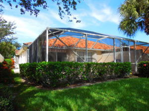 Lovely Patio Home in the desirable Riverwalk Community. Close to Downtown, I 95, Florida Turnpike. Endless Dining and Shopping opportunities nearby. Home boasts Volume Ceilings, Open Design Kitchen/Great Room and Sliding Glass Doors opening onto the Spacious Waterfront Screened Lanai. Built in wall unit in Living Area. Private Master Suite with Walk In Closet also overlooks water. Tile throughout makes for easy Florida Style Living. Interior Laundry Room with side by side W/D. 2 car garage with extra built in storage modules. Updated Kitchen with Granite Countertops, Glass Tile Backsplashes, Brand New Range/Oven and Microwave. Home has Accordian Hurricane Shutters. Riverwalk offers Resort Style Living with it's Waterfront Town Center boasting 3 swimming pools, fitness center,tennis center