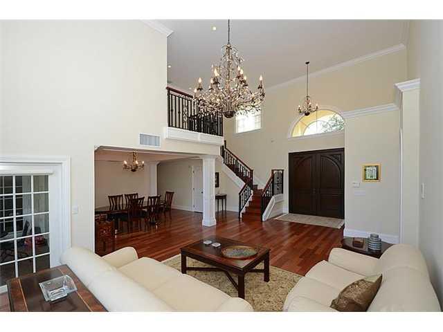 GORGEOUS LUXURY HOME COMPLETELY REMODELED LAST YEAR WITH MAHOGANY WOOD FLOORS, CROWN MOLDINGS, ALL BATHROOMS W/MARBLE AND MOSAICS, LED LIGHTING, CUSTOM CHANDELIERS, HUNTER DOUGLAS WINDOW TREATMENTS THROUGHOUT, WROUGHT IRON RAILINGS, SOLID MAHOGANY WOOD DO UBLE DOOR, BRAND NEW SS APPLIANCES, GRANITE COUNTER TOPS. CUSTOM BUILT INS OFFICE AND CLOSETS. PROTECTED BY IMPACT WINDOWS, SECURITY SYSTEM, 45 KW GENERATOR. SPECTACULAR SETTING ON BUILDER'S ACRE, W/LUSH LANDSCAPING & LOVELY WATER VIEW.