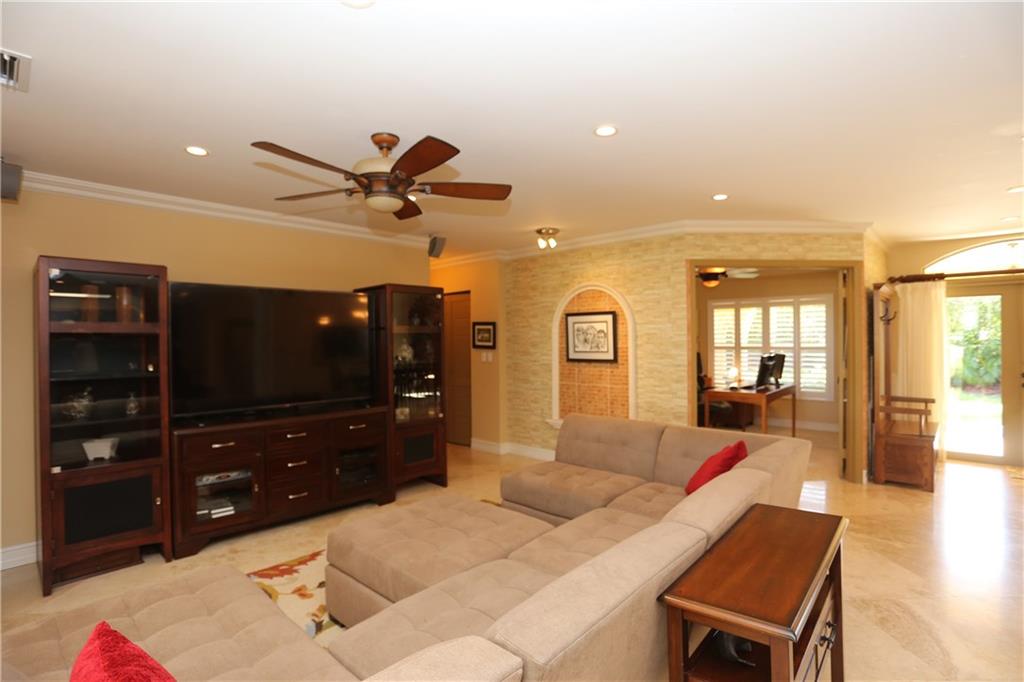 Gorgeous, gated, Mediterranean 4/3 home situated on 1/4+ acre; steps from Bayview Elementary and a bike ride to the beach! This double-corner lot 3,000+ sq ft property has marble floors throughout, designer kitchen, recessed lighting, surround sound, 2-zone AC, and a 2-story living room with working, 15-foot fireplace. French doors open to heated/waterfall pool, designer garden, built in BBQ, outdoor shower. Oversized master has his/her built-in mahogany closets and a sprawling bath w/6-jet jacuzzi.