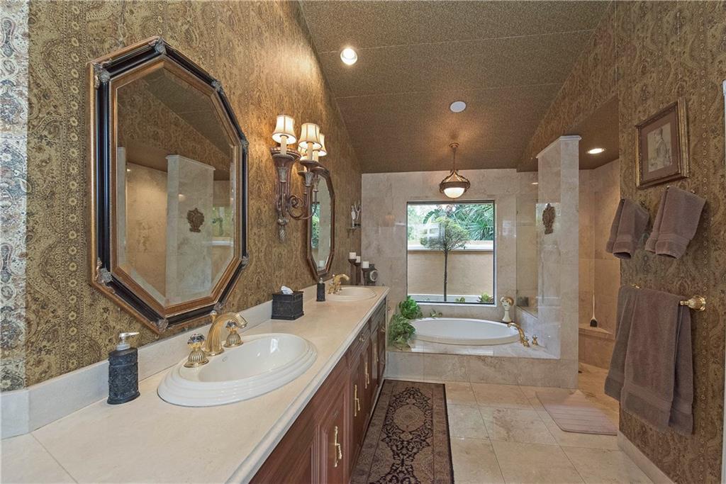 Cypresshead's BEST opportunity! Premier cul-de-sac, lakefront, point lot, .8 acre estate! Desirable features incl: split bdrms, volume ceilings, saturnia marble flrs, crown & chairrail moldings, Fr. doors, plantation shutters, fl-to-ceiling stone FPL, built-in wetbar, recreation/pool table area, "new" post-Wilma roof, 3-zone A/C(new main unit) & hurricane protection. Third car garage converted to exercise room & au pair suite w/full bath. Can easily be reconverted. Gorgeous pool/patio w/outdoor kitchen!!
