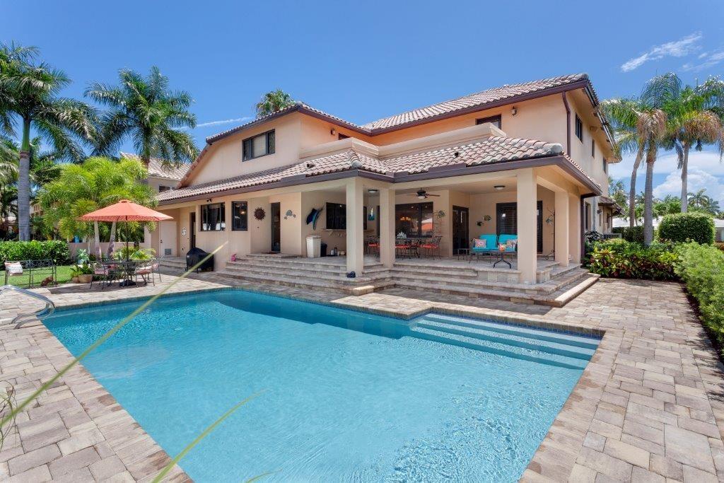 Designed for relaxed indoor/outdoor living, this Modern Mediterranean estate stands on the Rio Cervantes Waterway and includes yacht dockage with a lift. Tropical gardens and clean architectural lines give a beautiful first impression. Volume ceilings heighten the sense of space in the free-flowing interiors that lead out to the waterside lanai, stepping down to the sun-splashed pool patio. Famous Las Olas Boulevard’s shops and restaurants are within walking distance, and the beach is close by.