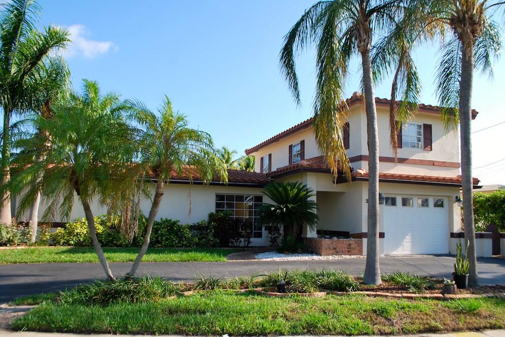 2-story waterfront home in Cypress Harbor. Over 2,000 sq ft living area with open floor plan on ocean access canal via 2 fixed bridges. Newer tile roof and Air Conditioning units. Master suite on 1st floor with adjoining office. Kitchen with stainless appliances overlooks huge living room and family room. Two bedrooms upstairs. Walk out roof-top deck from bedroom with views. Chicago brick patio off Family Room overlooks landscaped back yard and canal. Endless potential turning this gem into a dream home.