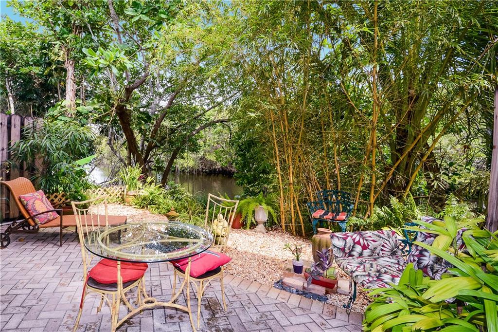 Three bedroom, two and 1/2 bath townhouse. Very popular gated community blocks from Wilton Drive. Private and secluded with only 44 units and a community pool. Kitchen with wood cabinets and granite counters opens to tranquil waterfront views. Double sliding doors to back yard patio space. Spacious master bedroom with sitting area and double slider door views of tropical landscaping and canal. New washer/dryer conveniently located on second level. Third bedroom for guests or small office. One car garage.
