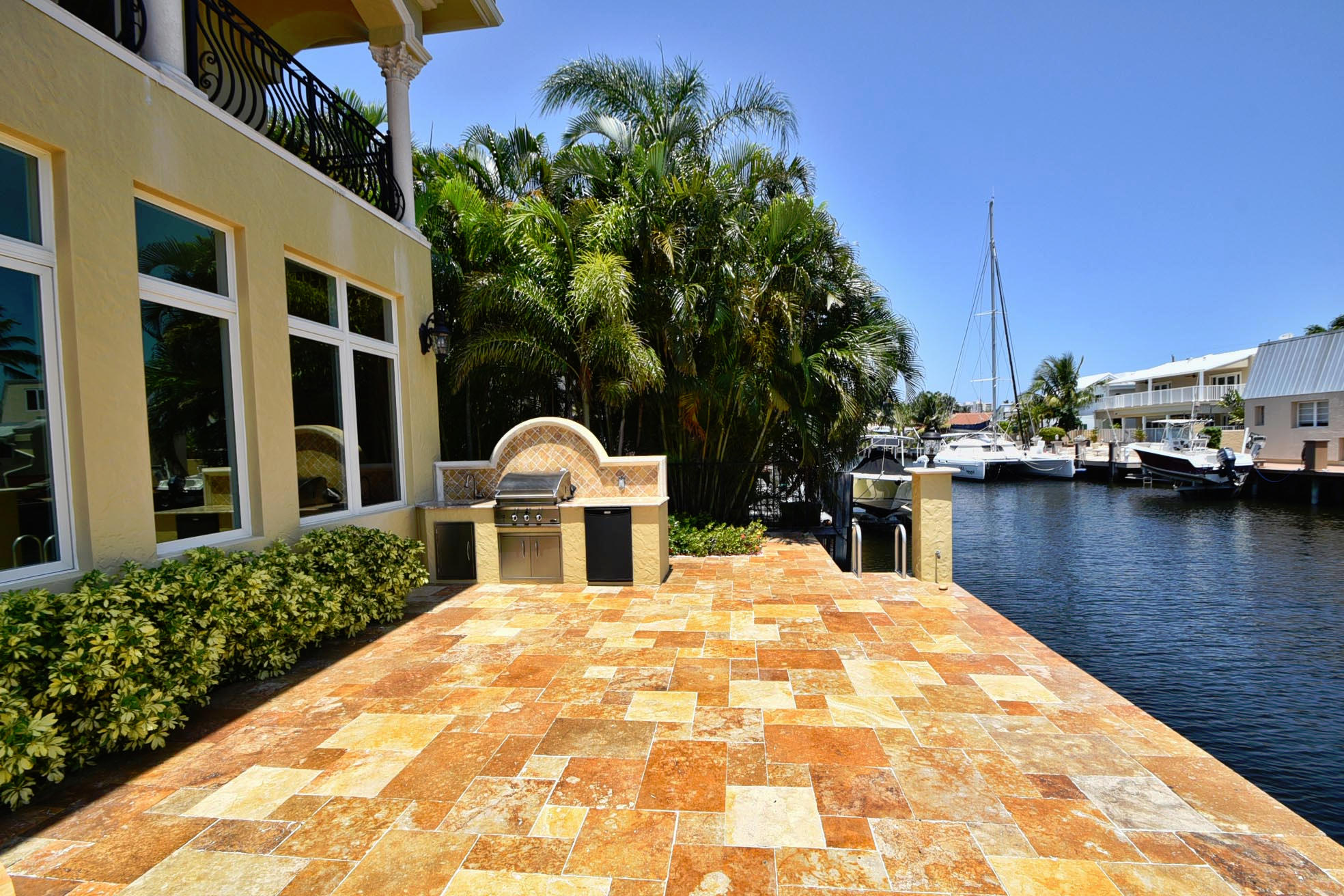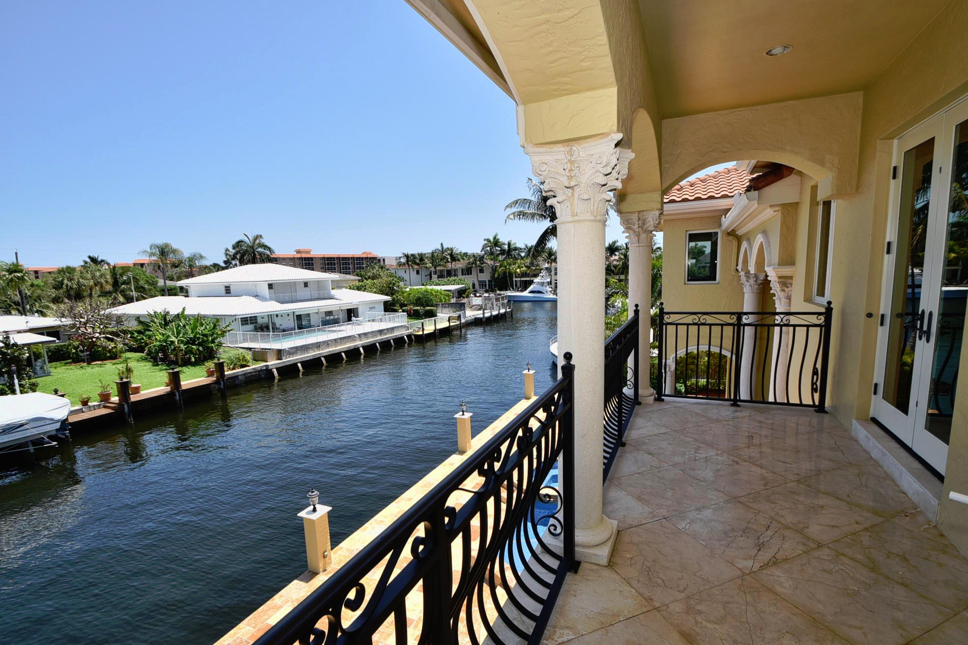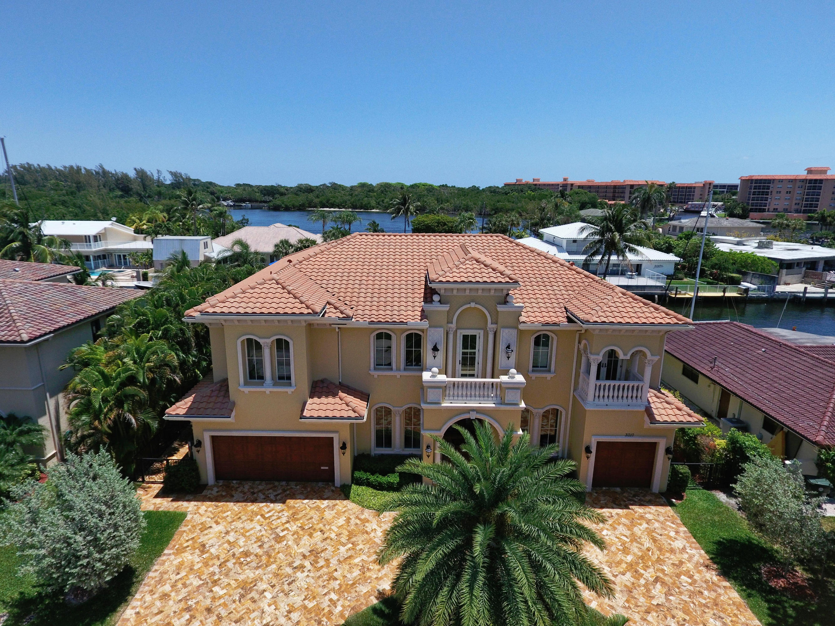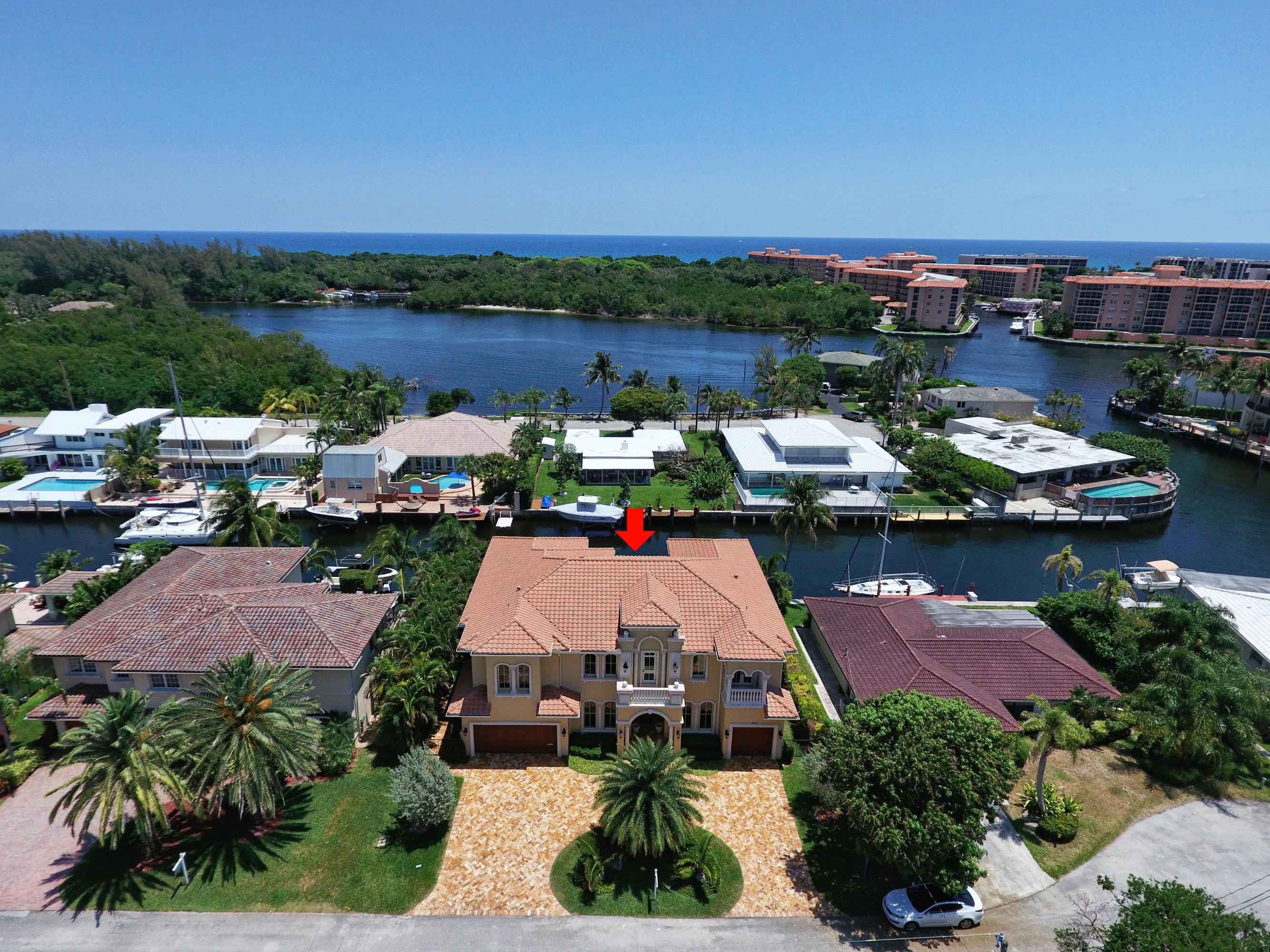 This Majestic Deepwater home in Blue Inlet is stunning & has an East exposure & shows new like a model home. It boasts 88' of waterfront, 65'dock, quick access to the Intracoastal & is a true Yachtman's Paradise. It's 7,368 tot.sf, 5,470 sf a/c, shows off its 5BD(all ensuite), 5.1BA, 3CG with the finest materials & construction available; onyx, marble, granite, large walnut lined elevator, winding marble staircase, ornate finished fireplace,impact windows, custom cabinetry throughout, a 1st floor bedroom and office/library. You'll enjoy your spacious Turkish pavered patio, heated pool/spa & summer kitchen. The gourmet kitchen is equipped with top end Thermador appliances & a butler pantry with a wine chiller.You can walk to fine restaurants & the Beach! DO NOT HESITATE TO PRESENT ALL OFFER
