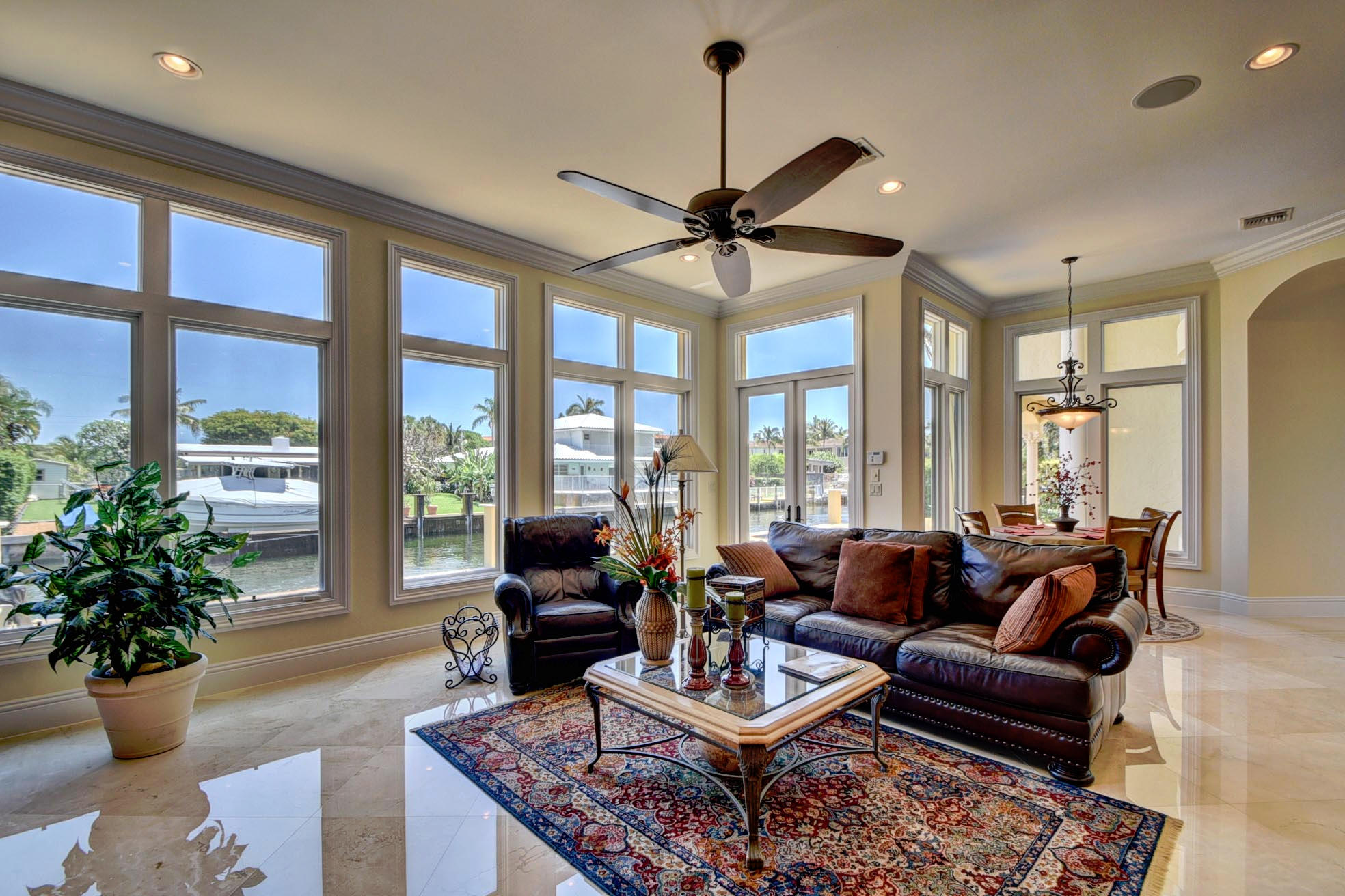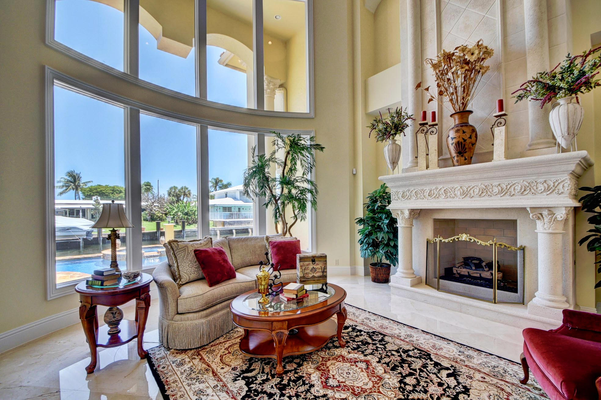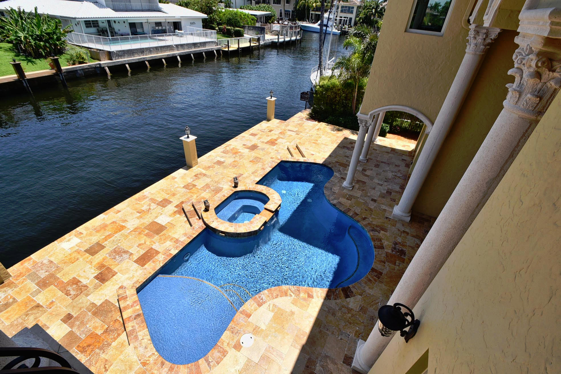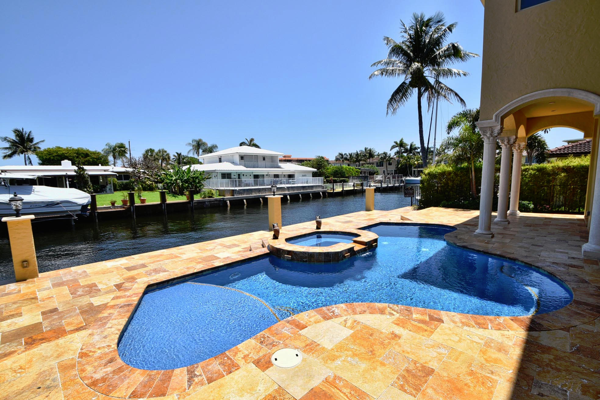 This Majestic Deepwater home in Blue Inlet is stunning & has an East exposure & shows new like a model home. It boasts 88' of waterfront, 65'dock, quick access to the Intracoastal & is a true Yachtman's Paradise. It's 7,368 tot.sf, 5,470 sf a/c, shows off its 5BD(all ensuite), 5.1BA, 3CG with the finest materials & construction available; onyx, marble, granite, large walnut lined elevator, winding marble staircase, ornate finished fireplace,impact windows, custom cabinetry throughout, a 1st floor bedroom and office/library. You'll enjoy your spacious Turkish pavered patio, heated pool/spa & summer kitchen. The gourmet kitchen is equipped with top end Thermador appliances & a butler pantry with a wine chiller.You can walk to fine restaurants & the Beach! DO NOT HESITATE TO PRESENT ALL OFFER