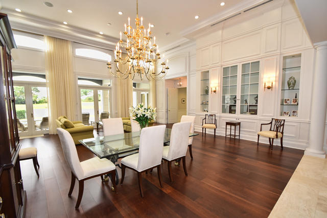 MAJOR PRICE REDUCTION! Sold TURNKEY! Built in 2011 with extraordinary attention to detail & exquisite high-end finishes, this elegant, Contemporary two-story, 4-bedroom + office home was designed to highlight the expansive lake & 5 fairway golf course views. Marble and wide-plank wood floors, architectural moldings, tray ceilings, French doors, HURRICANE GLASS, energy-efficient LED lighting, high-end plumbing fixtures, motorized shades, sound system, and more, grace the interior. The double door entry with an adjacent sitting room leads to a spacious living room and dining room which features beautiful, hand-crafted built-in cabinetry. The living room and dining room flow easily into the family room and kitchen, and all the rooms provide beautiful views of the lake and golf