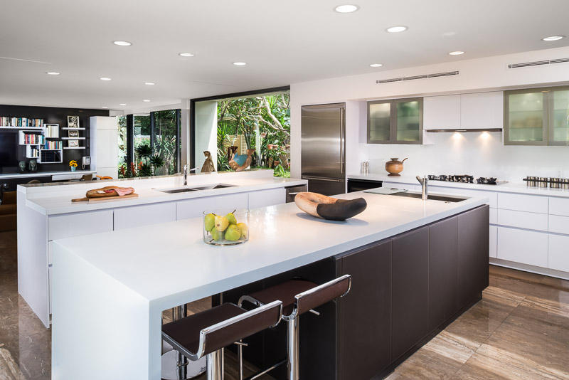 Contemporary mid-town ocean block residence with Har Tru surface tennis court, 60' heated pool, spa and deeded beach access. Air cond. cabana with bath doubles as 6th bedroom. New Alno design kitchen, top line stainless and gas appliances. 3 car garage + caterer's kitchen. Beautifully maintained. In pristine condition!