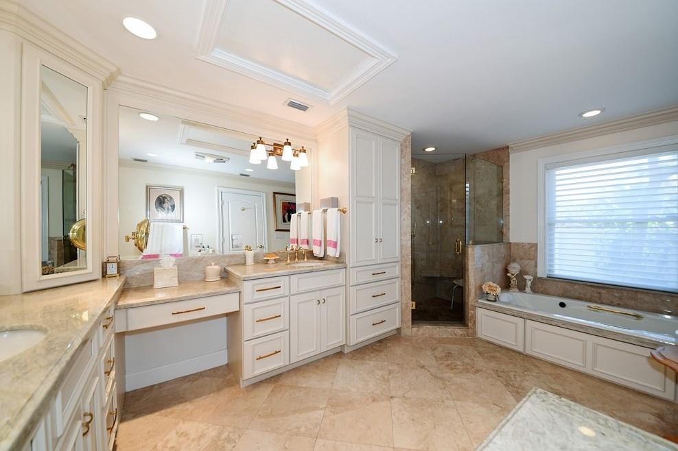 Popular PB north end beach access comes with this one story home on a 13,490 SF. Brand new wood burning fireplace in the living room, two master suites plus 2 en-suite bedrooms, high ceilings, all impact windows/doors, eat-in kitchen, formal living & dining rooms, formal entry leads to open view of the covered loggia, 34x20 heated pool and spacious beautifully landscaped yard. Easy access to the ocean and the lake trail, and across the street from the Town's Arboretum.