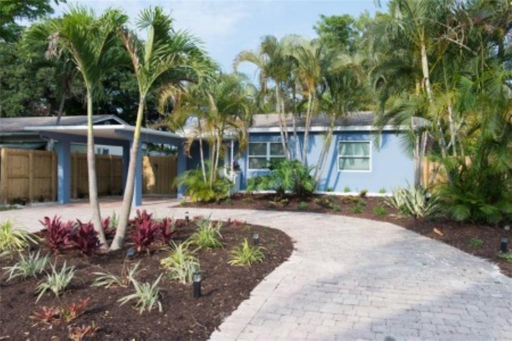 Mid Century Designer Home. Blocks from Wilton Drive and minutes from the beach. This spacious Turn key home boasts over 1300 sq feet of living entertaining space, 2 Bedrooms, 1 Bath plus a Sun Room/Office and Laundry. Private, gated yard with room for a large pool. Garden views from every room. 24 x 24 tile floors throughout. Anderson Impact Windows and Doors, Chefs kitchen with top-of-the-line KithenAid Appliances, frosted glass interior doors, custom closets, covered patio