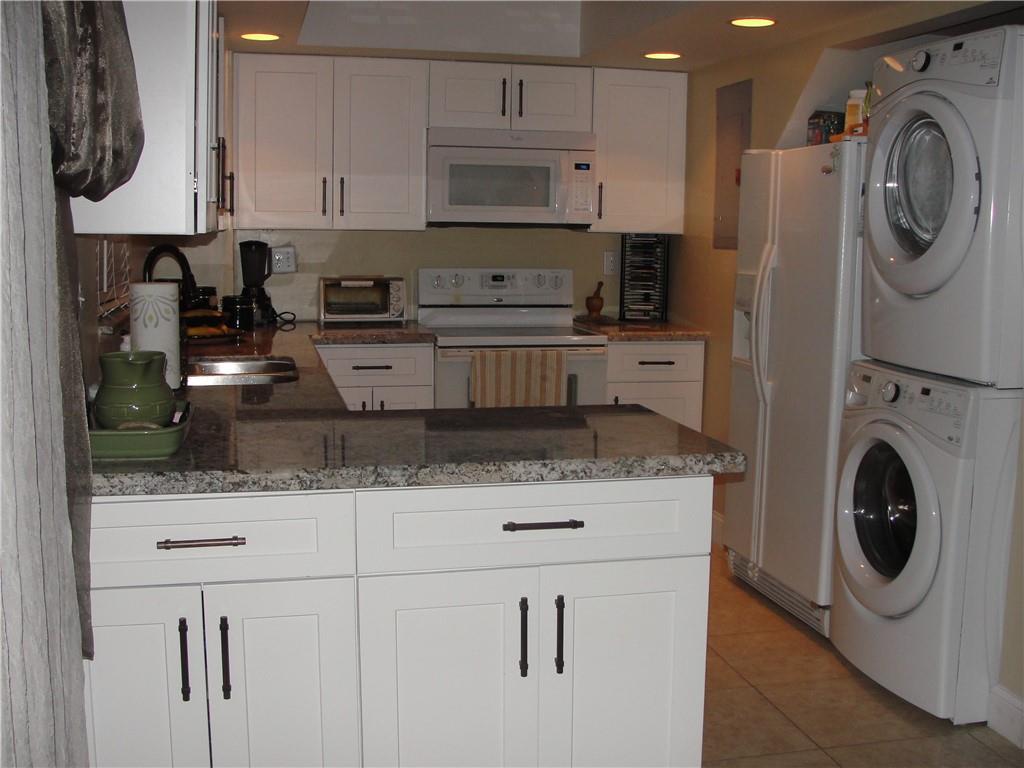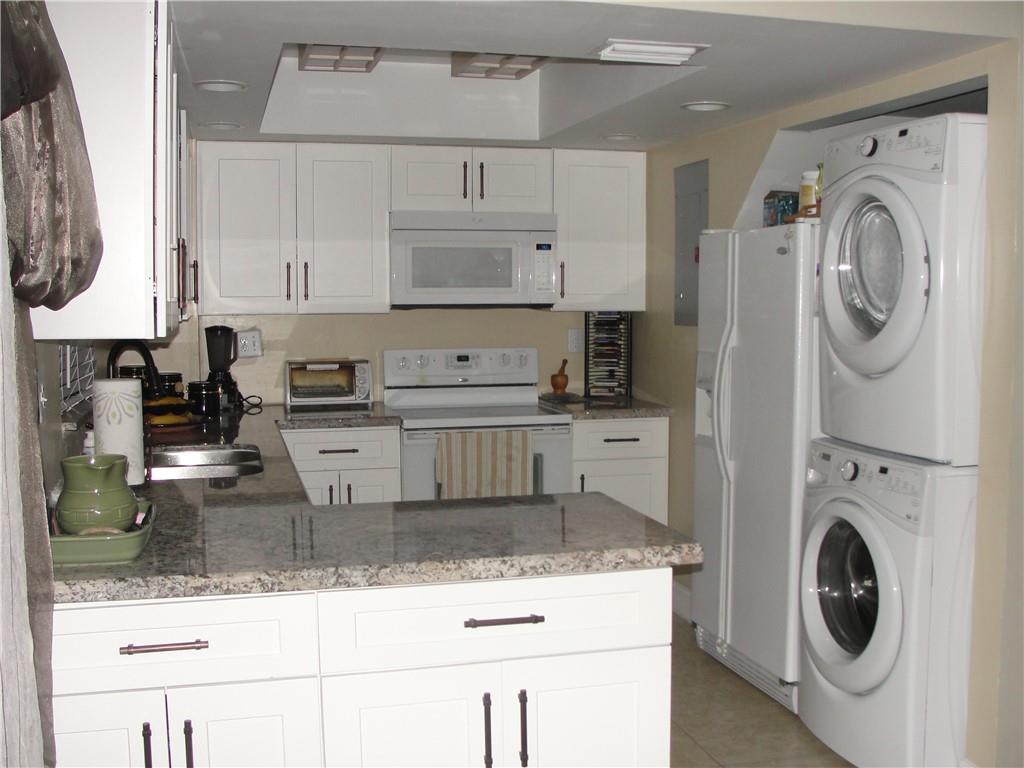Newly upgraded townhome. Kitchen has granite countertops, white cabinets. Newer appliances. Brand new washer and dryer. 1st floor newly tiled with 18" tiles. Freshly painted. 2 master suites upstairs with carpet and 1 bedroom downstairs with tile, french doors. Both bathrooms have tub/shower combo. Walk in closets have built in shelving. Laminate flooring on stairs and hallway. Corner unit has extra windows added brightness. Large fenced patio with storage closet. Community swimming pool.