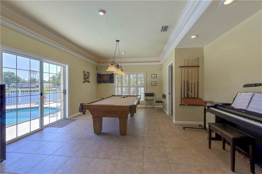 Huge 2 story home with 7 bedrooms on a 5 point water pie-shaped lot leading to the Intracoastal waterways, Immaculate inside with tons of upgrades, Large bedrooms & Cherry wood/Granite/Stainless kitchen, 2 beds down,1 could be a guest suite with own bathroom & closets, Master and 4 additional bedrooms upstairs, Spectacular Media room and Family room & Relaxing sunning porch overlooking the Tropical pool & 5 point water pie shaped lot with boat dock for up to 35ft boat & boat lift for up to 6000lbs,