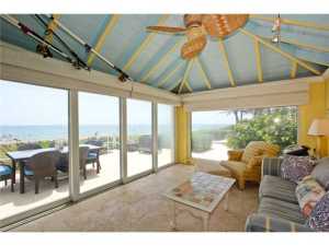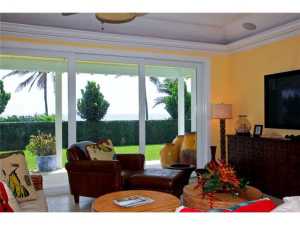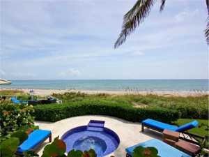 A very special Oceanfront beach house in quiet Northend Palm Beach location. Great for vacations and entertaining. Designed for casual living, the property includes 5BR/4.5BA main house with large pool and 1BR beach house with kitchen, full bath, and spa overlooking Ocean & wide sandy beach. Spacious split bedroom floor plan in main house. Master bedroom with Ocean views includes sitting room and dual full bathrooms. Guest bedrooms have full bathrooms. Charming kitchen with granite countertops and breakfast area. Huge terrace off loggia leads to inviting pool with cascade fountain. 2-car garage with lots of storage. An enchanting tropical paradise!