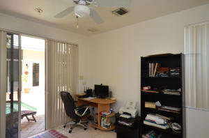 3 bedroom, 3 1/2 bath courtyard home looking out on the beautiful golf course of Boca Country Club, a club with no mandatory membership. The main house has 1 bedroom and 1 1/2baths with the living room fronting on the pool. The kitchen and dining room face the golf course. The house has high ceilings,tile throughout, and newer stainless steel appliances.The guest house on the other side of the pool has 1 bedroom and 1 bath. Above the garage there is an apartment with 1 bedroom and 1 bath. Located minutes to I-95.