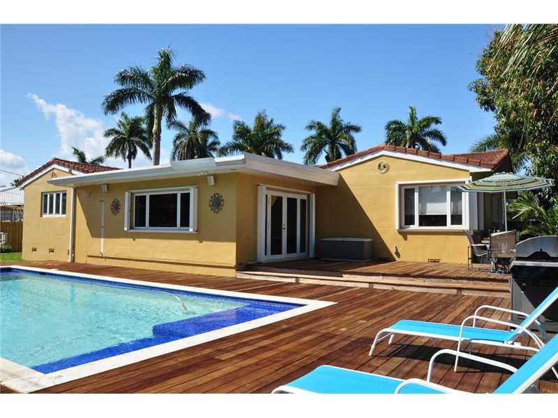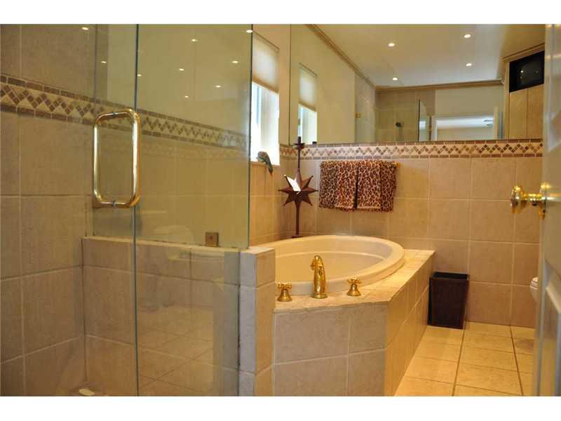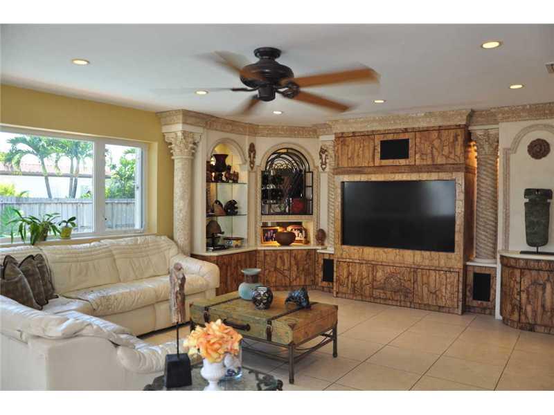 Elegant & Spacious 3 bed/2.5 bath home in Prestigious Hollywood Lakes on double lot.Fireplace & custom tile floors in living room.Custom builds: built-in bar w/lalique tops & wine cooler, built-in buffet in dining room, built-in entertainment unit w/surr ound sound in family room.Updated kitchen w/ travertine floor.Beautiful salt water pool w/Brazilian Walnut deck,imported tile,coral stone coping & sitting area w/water jets.Front porch w/sitting area & travertine floor.2 car garage.Large circular driveway