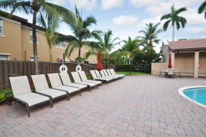 Beautifully maintained Mediterranean style town home in the quiet community of Cimarron. This home features three bedrooms, two and a half baths, family room and separate living room, an attached one car garage and over 1800 Sq. Ft. of living space. Upgraded kitchen with granite counter tops, A/C 2011, recessed lights, walk in closets, three linen closets, hurricane shutters and eight foot doors. Bamboo flooring and high ceilings throughout. The master bedroom has an on suite bathroom with soaker tub, glass shower and double vanity sinks. This home also features a large fenced in patio and balconies in all three bedrooms. Community pool and recreation area are included. An A+ school district